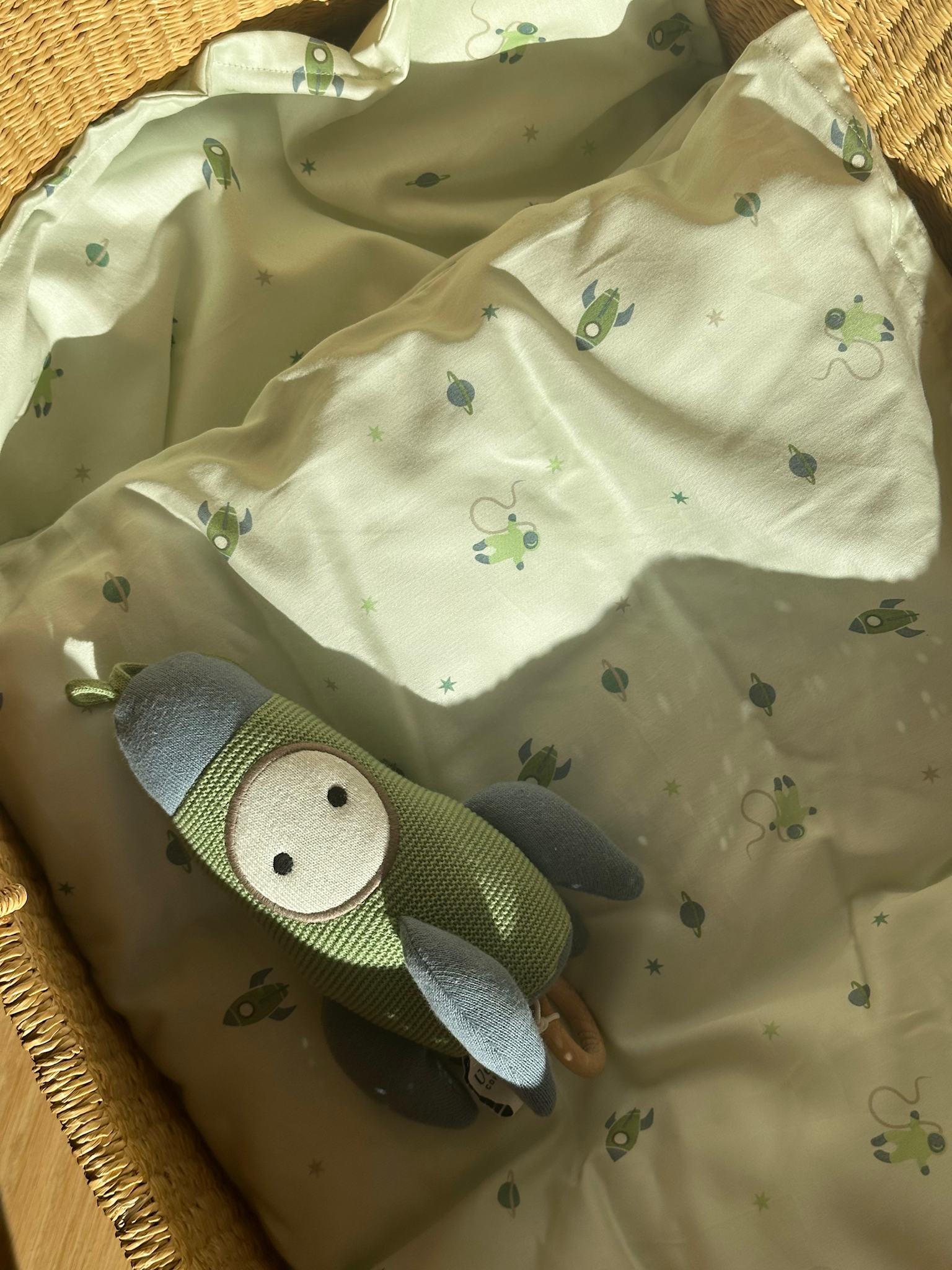 Musik mobilen er strikket i blødt økologisk bomuld, træk i træringe og uroen vil spillede den yndigste vuggevis, der vil få barnet til at slappe af og kramme sin sovebamse samt opfordrer dit barn til at udforske og gribe fat i legetøjet. Dette hjælper med at berolige dit barn og udvikle dets motoriske færdigheder og hånd-øje-koordination på en hyggelig og interaktiv måde.